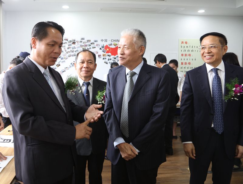 2016级老挝留学生班任课教师王彤、2016级老挝留学生陆娅、2017级老挝留学生Billy分别作为教师、老生和新生代表发言,并由老挝留学生薇拉娅、唐糖担任王彤和Billy的汉语翻译,陆娅用汉语和老挝语双语发言。老挝教育代表团随团翻译通萨多次对2016级老挝留学生的中文发言和翻译表示肯定和赞赏。本朋副司长一行还观看了2016级老挝留学生的专业技能展示、传统文化展示、中文导游词讲解。看到汉语零基础入学的首届老挝留学生们经过一年的学习取得巨大进步,能够流利的中文解说和翻译,本朋一行十分欣慰,赞不绝口。