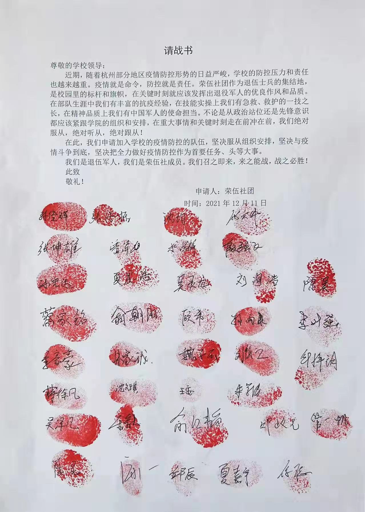 浙江育英职业技术学院——抗疫担当丨一封特殊的“请战书”