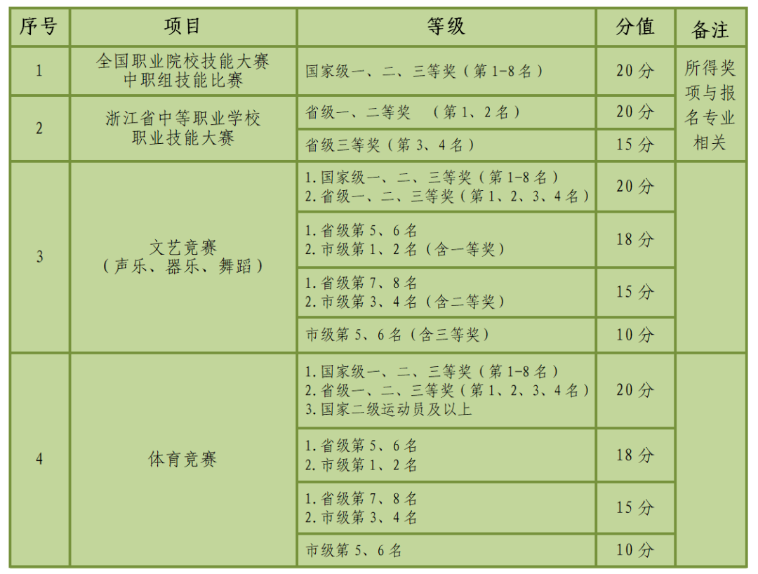 (四)素质特长项赋分:满分20分。