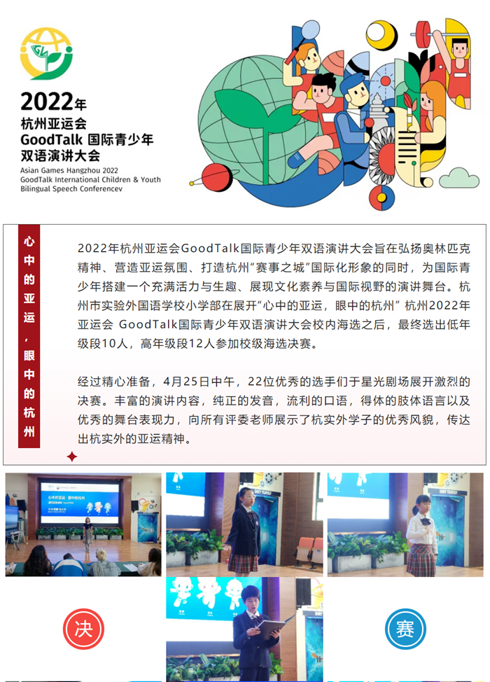杭州市实验外国语学校内决赛来了!杭州2022年亚运会GoodTalk国际青少年双语演讲大会
