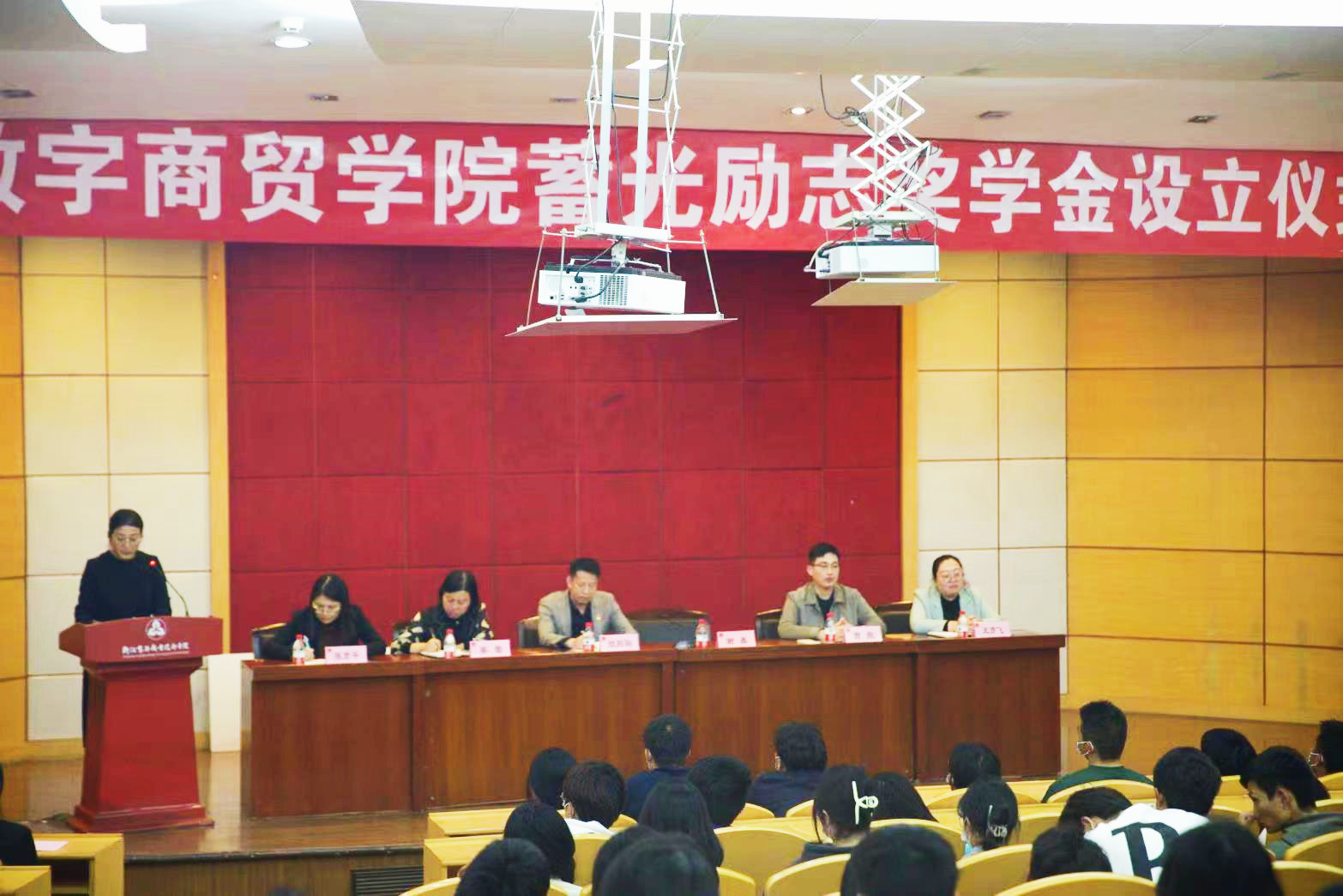 数字商贸学院院长欧阳驹介绍了“蓄光励志奖学金”设立的背景,他指出,“蓄光励志奖学金”和“未来合伙人”创业人才孵化项目的设立,不仅体现了校友对母校感恩回馈的浓厚深情,也是校友企业对学院办学实力的充分肯定,搭建了学院与校友企业项目合伙人需求的直通车,开启了学校与优秀校友合作培养人才的新篇章。