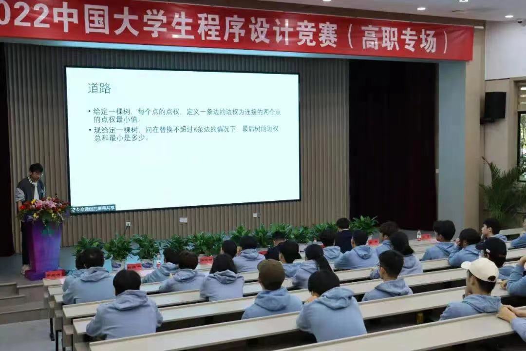 此次大赛由中国大学生程序设计竞赛组委会(简称CCPC)和工业和信息化部教育与考试中心联合举办,是“强国杯”技术技能大赛项目(2022年赛项编号QGB202212)中的一个赛项。本次共产生7个金奖、14个银奖、21个铜奖、1个顽强拼搏奖、8个最快解题奖。中国大学生程序设计竞赛首次举办高职专场,由我校承办。