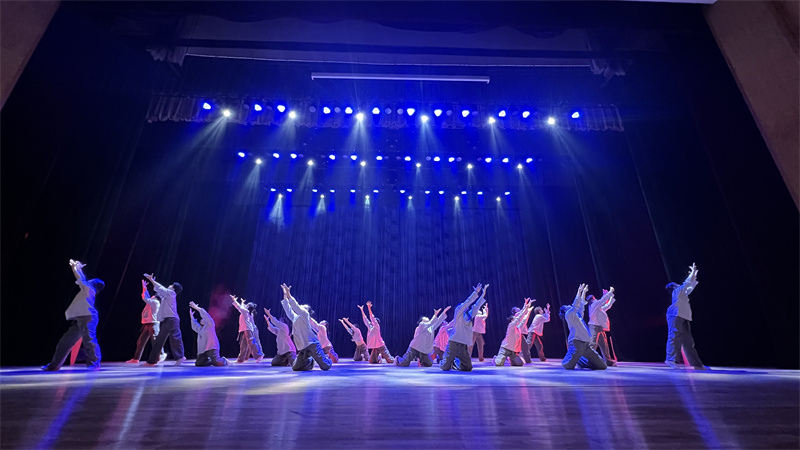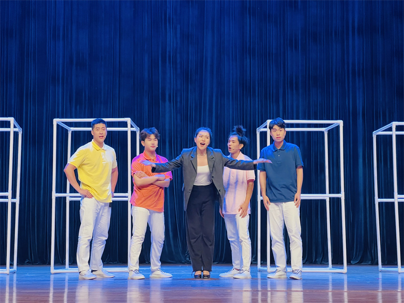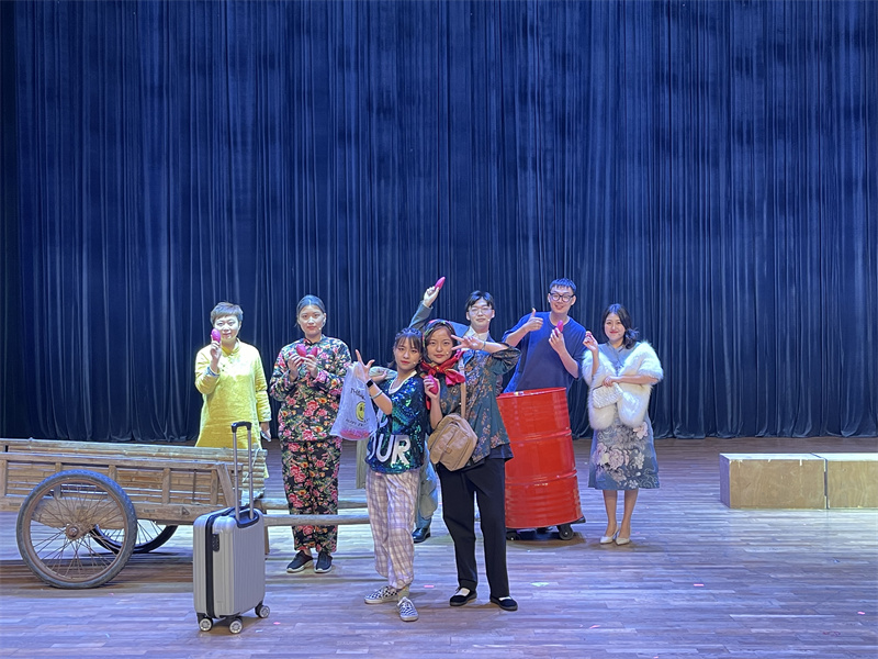 戏剧团成员田媛参演了戏剧作品《高端人才》,她说:“我很享受在舞台上的感觉,也很享受一遍遍打磨作品的过程。集训排练的日子正逢期末,课业压力很大,但也阻挡不了大家风雨无阻地赶到排练厅,全身心投入角色中。艺术给我们插上了翅膀,将我们带到了大学生艺术节的竞技舞台上,备赛的过程,也是成长的过程。”