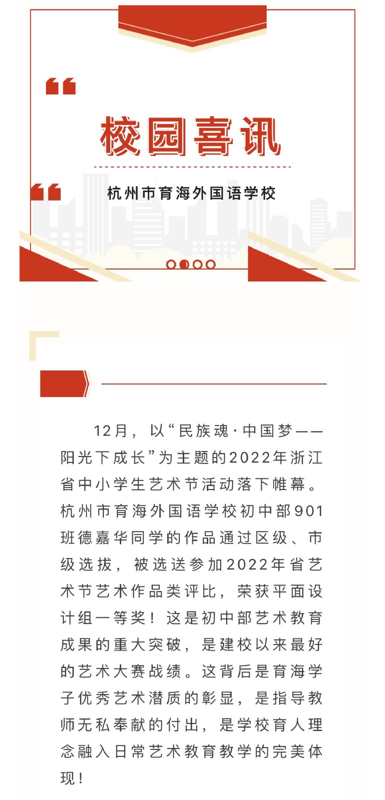 重磅!浙江省中小学生艺术节一等奖花落杭州市育海外国语学校