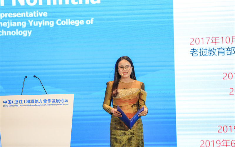 浙江育英职业技术学院老挝毕业生在中国(浙江)澜湄地方合作发展论坛作主题分享