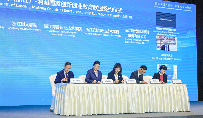 现场还举行了中国(浙江)—澜湄国家创业教育联盟等签约仪式,浙江育英职业技术学院党委书记、副校长谢鑫代表学校签约。