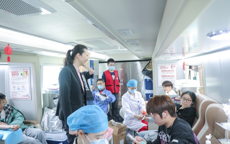 完成“热血游园会”打卡后,同学们纷纷走上献血车,撸起衣袖献热血。与会领导被青年们的献血热情深深打动,走上献血车向热血青年们表示慰问和感谢。