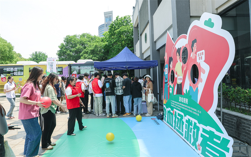 为了增强本次活动趣味性和青春活力,首次在献血车旁推出“热血游园会”,开设6个展区,参与者们可领取一张“热血集章卡”,完成各展位打卡集齐印章即可参与抽奖、兑换神秘礼品。