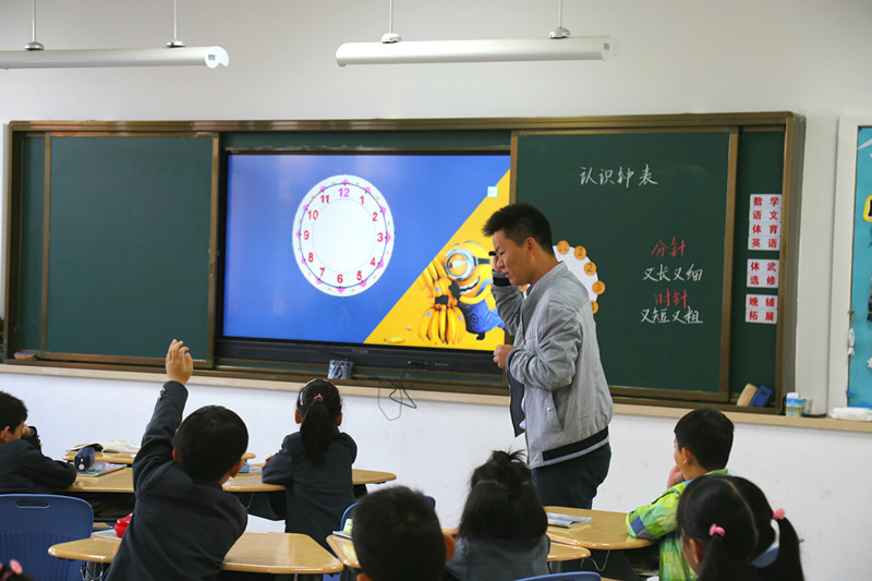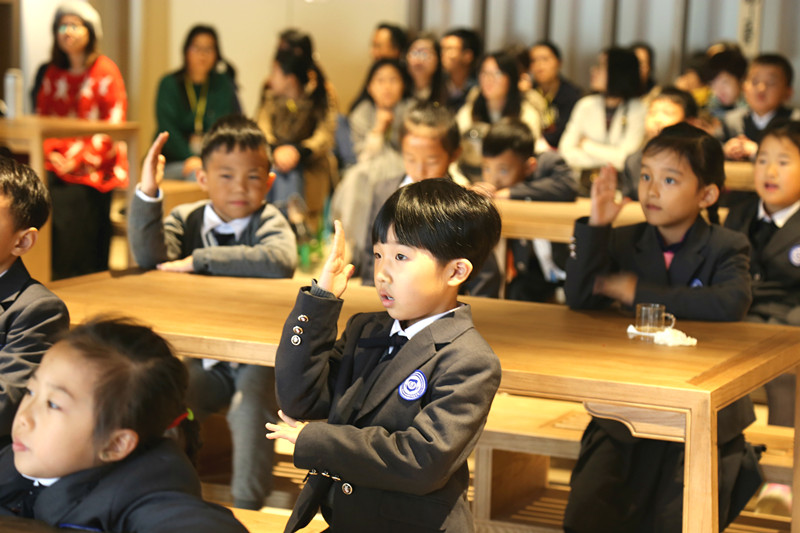 绚烂的深秋,天空一碧如洗,空气沁人心脾,凉风拂过,却是带来了一路的热闹景象。杭州市育海外国语学校小朋友们带来了一批新学生——原来是小朋友们带爸爸妈妈们来上课啦。家长们陪着孩子随堂听课,还陪着他们做操、参观校园,真是收获满满的开放日。