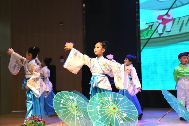 育海以传统文化修身,平日里的“日有一诵”,如果和艺术结合,送上舞台,会是什么样?一年级四个班以《四季》、《追月》、《快乐的节日》和《三字经》为主题,都展现了他们独特的理解:是孩子们清脆的互相问答,是朗朗上口的吟唱,是用图画和动作进行诗词场景的重现,是日常生活与经典的融合。在不断地听之诵之、琢之磨之中,经典通过艺术,从书上走到了孩子们的心里,以此为规范,修身笃行;诗词从一个个简约的字,变成了一幅幅五彩缤纷的图画,储存在记忆深处,等待着某一天真实生活将它们唤醒,恍然大悟。