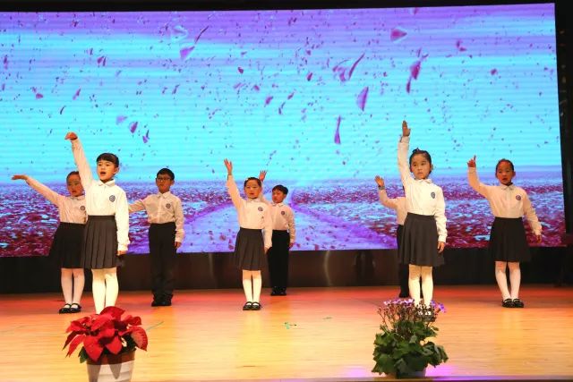 最后一首《感恩的心》手语表演,“感恩的心,感谢有你,伴我一生,让我有勇气做我自己。”孩子们一边轻轻和着歌声,一边拿出手边的向日葵摇摆着,报告厅成了花的海洋,温柔而明亮。演出已经落幕,艺术浸润心田,经典播种智慧,相信孩子们定将用童心创造育海美丽的明天。