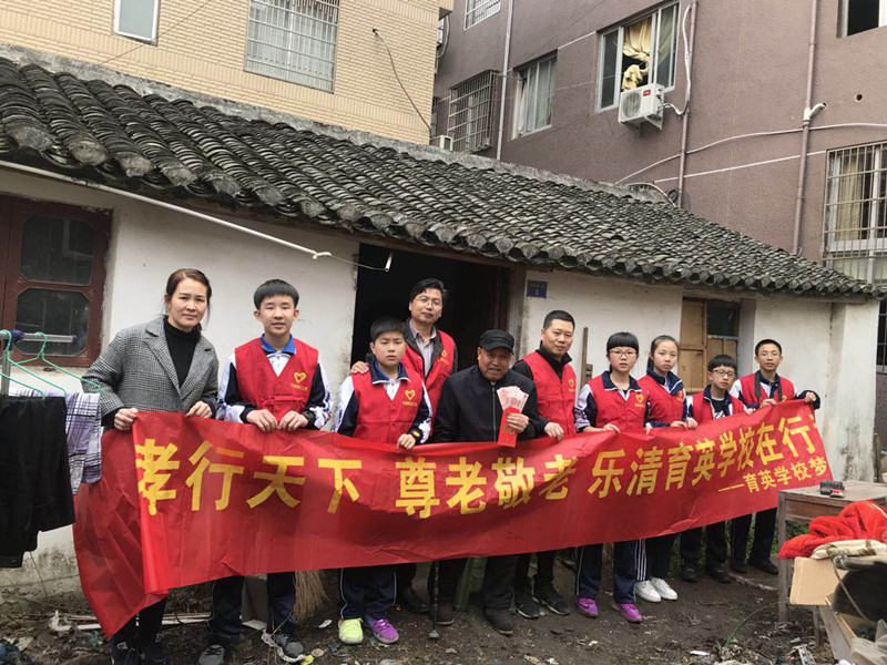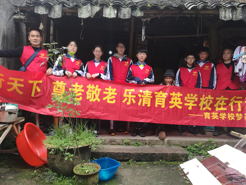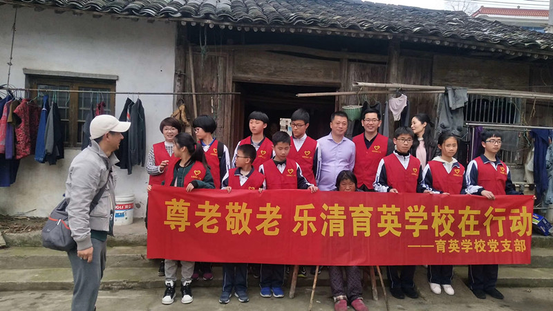 3月25日,浙江乐清育英学校初中分校的学生与家长一大早就聚集在学校行政楼前,他们在学校党委的带领下,将去探望生活在乐清乡镇里的特困老人,学校还为特困老人准备了各种生活礼品。