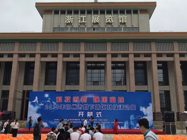 杭州市科协副主席张贵书(右一)、杭州市科协科普部部长余勇平(右二)